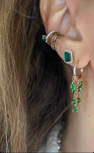 חישוק יהלומים בסגנון שנדליר עם טיפות אמרלד
