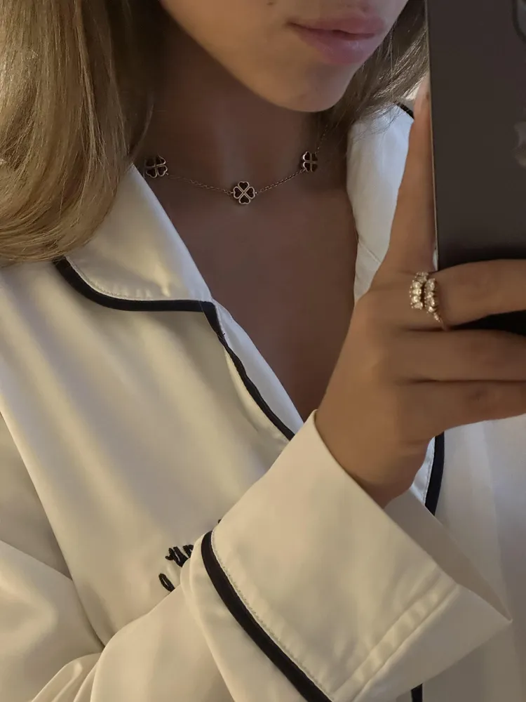 שרשרת 7 לבבות תלתן אמייל שחור דו צדדי
