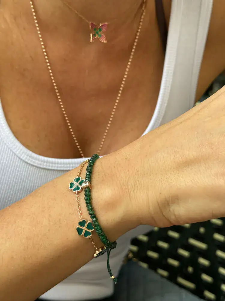 שרשרת מליז Meliz's flower - פרח משובץ אמרלדים וספירים ורודים