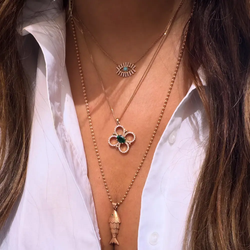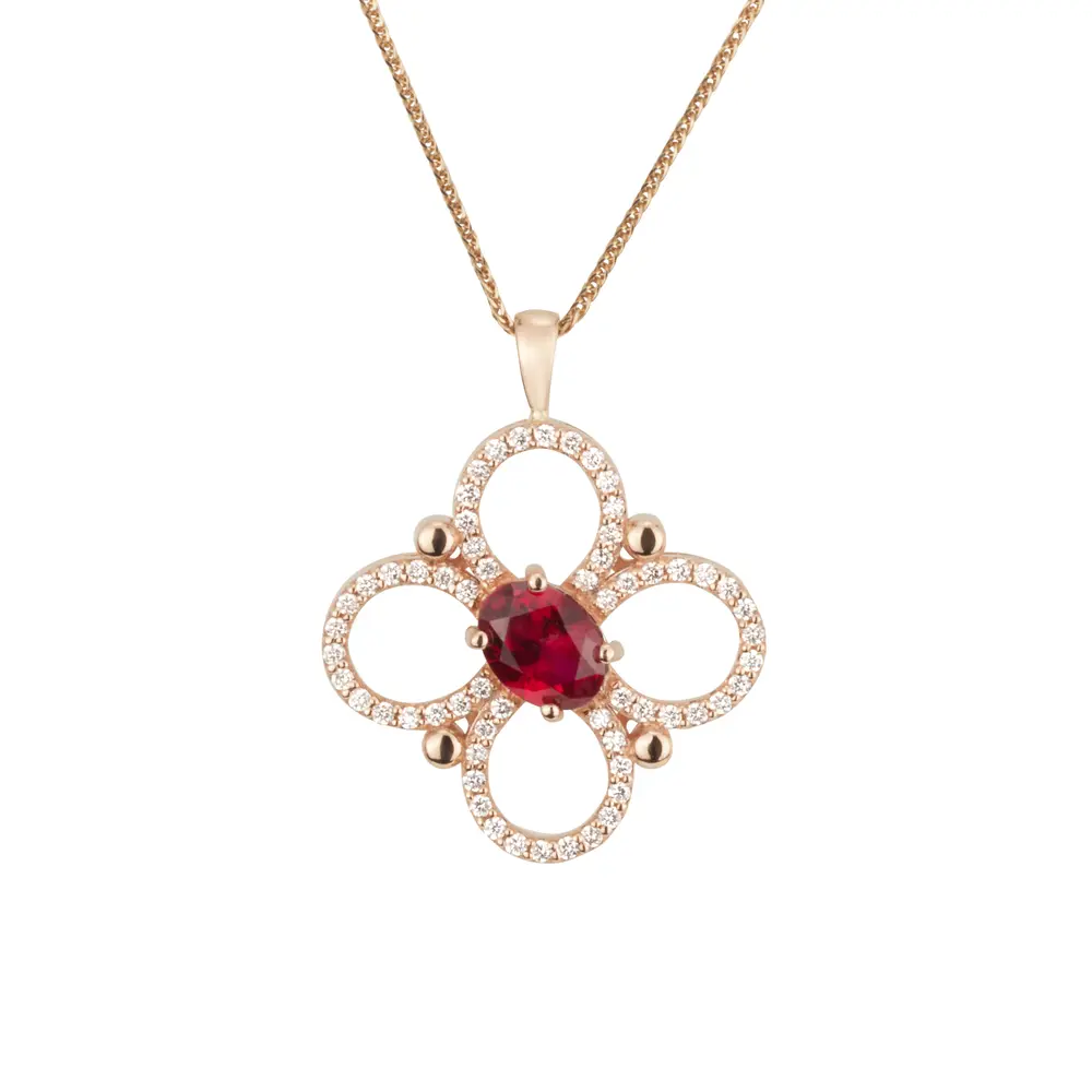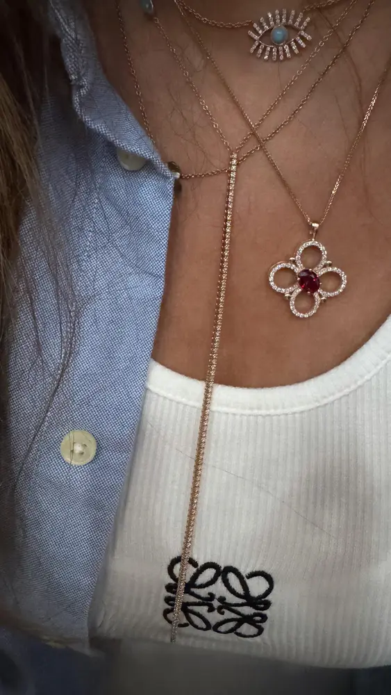 שרשרת תלתן יהלומי מעבדה עם רובי / אמרלד מעבדה